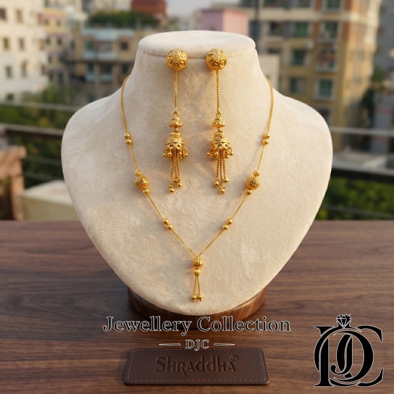 এলিগেন্ট বিডেড পেনডেন্ট চেইন + গোল্ডেন ড্রপ ঝুমকা ইয়াররিং (গোল্ড প্লেটেড) কম্বো সেট
