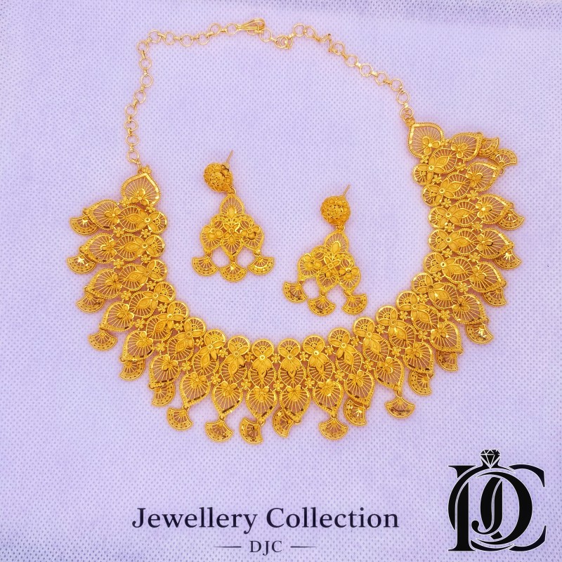 প্রিমিয়াম ফিলিগ্রি লিফ প্যাটার্ন গোল্ড নেকলেস সেট